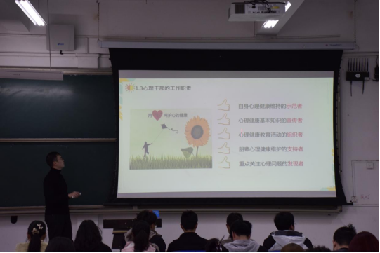 为了加强学生干部能力建设,完善学院心理健康网络,3月29日,beat365唯一官方网站在J14-107举办了“从‘心’出发,‘委’以重任”心理干部技能培训。本次培训邀请学生工作部大学生心理健康教育中心孔恺臻老师主讲,各班班长、团支书、心理委员及宿舍心理观察员参与了此次培训。