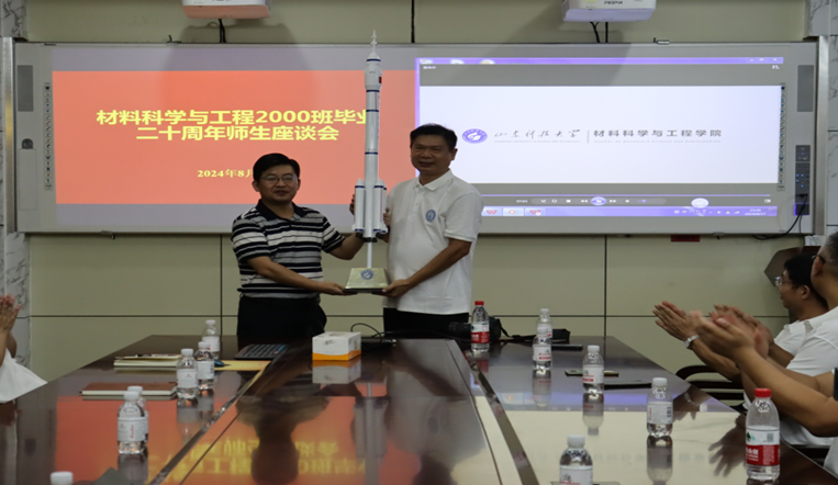 校友们向学院捐赠了火箭模型,希望学弟学妹们坚定专业自信,潜心科研,成长成才;祝福学校和学院永攀科技高峰、不断取得新突破。学院党委副书记李建楠代表学院接收捐赠。