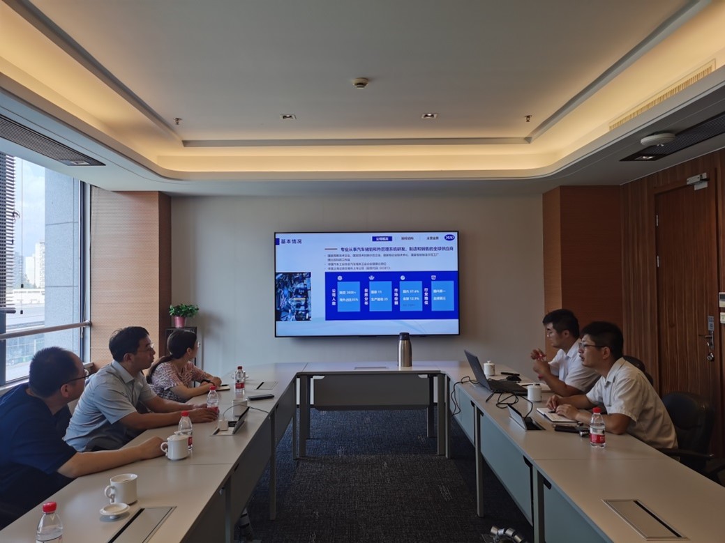 在亚普汽车部件股份有限公司,新能源事业部总经理顾华、副总经理徐恪(高分子2006级校友)等就企业的生产经营状况以及项目攻关情况进行了重点汇报,并带领参观了生产现场和实验室。双方就新能源领域的项目合作进行了交流探讨。