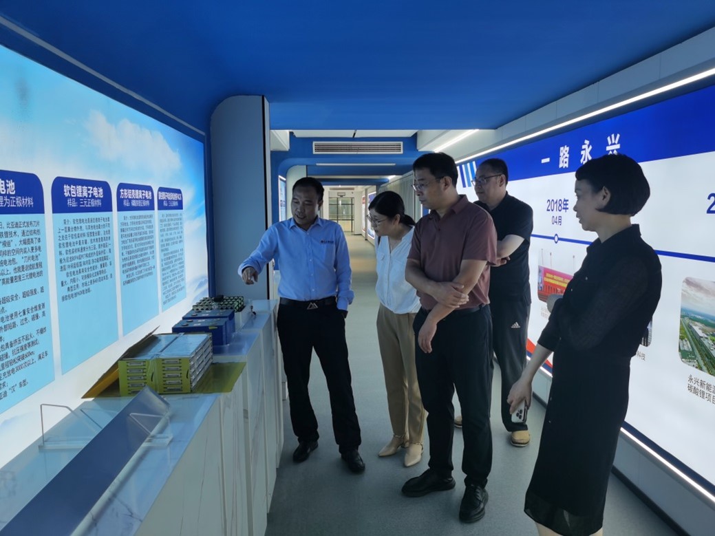 在江西永兴特钢新能源科技有限公司,总经理邹伟民、副总经理王建勇(材料1997级校友)等接待了申兆亮一行,并详细介绍了公司的发展运营情况和科技创新成果与人才队伍建设,王建勇带领参观生产现场及实验室。申兆亮介绍了学校学院的基本情况,韩永芹详细介绍了和企业发展相关的科研成果和转化案例,双方就深化产学研合作进行了深入的探讨。