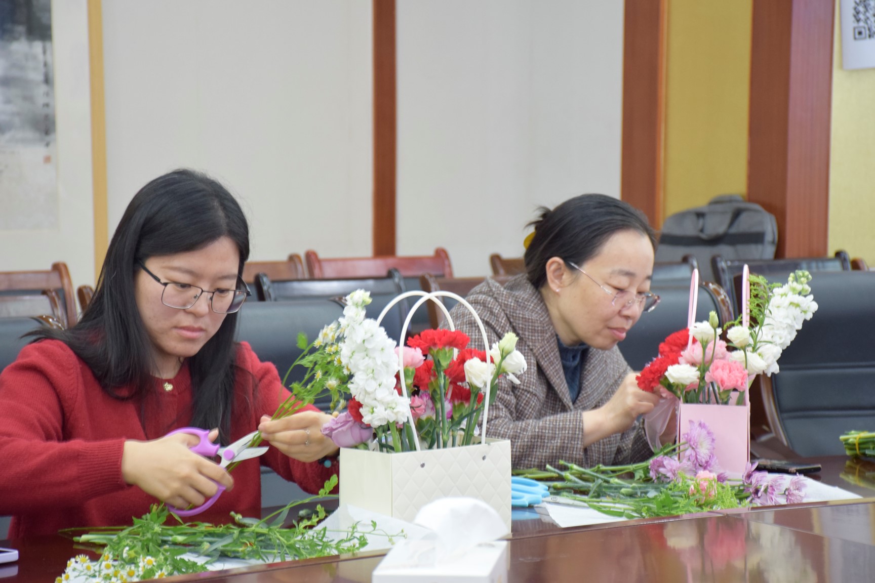 3月7日上午,在第115个“三八”国际劳动妇女节来临之际,beat365唯一官方网站组织全体女教师在J2-434举办“插花艺术,美美与共”主题活动。党委书记申兆亮莅临现场,向全体女教师致以最诚挚的节日祝福。