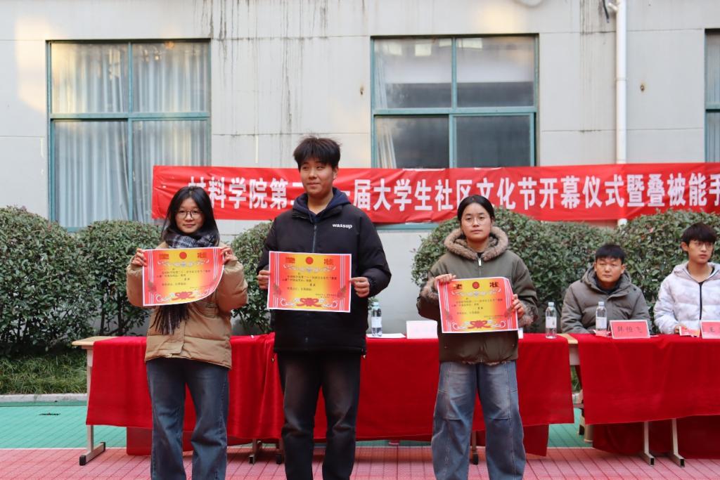随后进行的叠被能手大赛,开展了“小试身手”“互帮互助一起来”“迎难而上”“班级趣味活动项目”四个项目,8支参赛队伍同台竞技。选手们动作利落、标准规范,将被子叠成整齐的“豆腐块”;拉拉队助威声此起彼伏,现场氛围热烈。经过多轮比拼,最终2025级金属二班斩获一等奖,高分子三班、金属三班获二等奖,高分子一班、金属一班、新能源二班获三等奖,高分子二班、新能源一班获优秀奖。