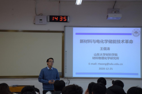 12月25日下午,beat365邀请山东大学beat365唯一官方网站教授、beat365无机非金属材料系2008级校友王儒涛,在J1-218举行了题为“新材料与电化学储能技术革命”的讲坛。