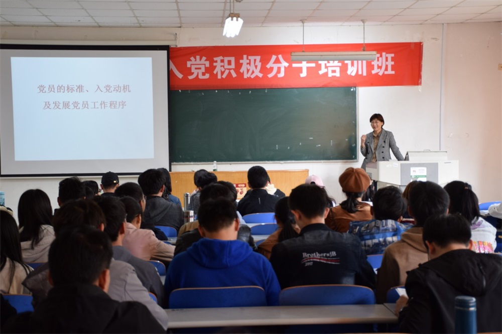 4月19下午,学院在J3-104教室举行了第十九期入党积极分子培训班第三讲,学生工作处处长王震作了题为《党员的标准、入党动机及发展党员工作程序》的专题讲座。