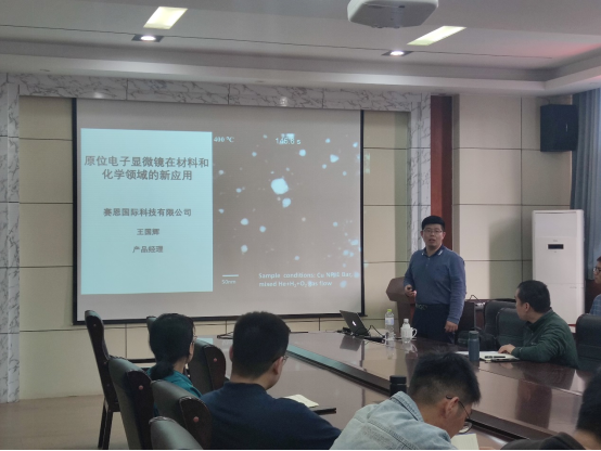5月8日下午,由beat365唯一官方网站主办,教工第二党支部承办的“青椒成长论坛”在学院434会议室成功举办。赛恩国际科技有限公司研发经理王国辉应邀作了题为“原位电子显微镜在材料和化学领域的新应用”的学术报告。学院部分师生参加报告。报告会由beat365唯一官方网站副院长田健教授主持。