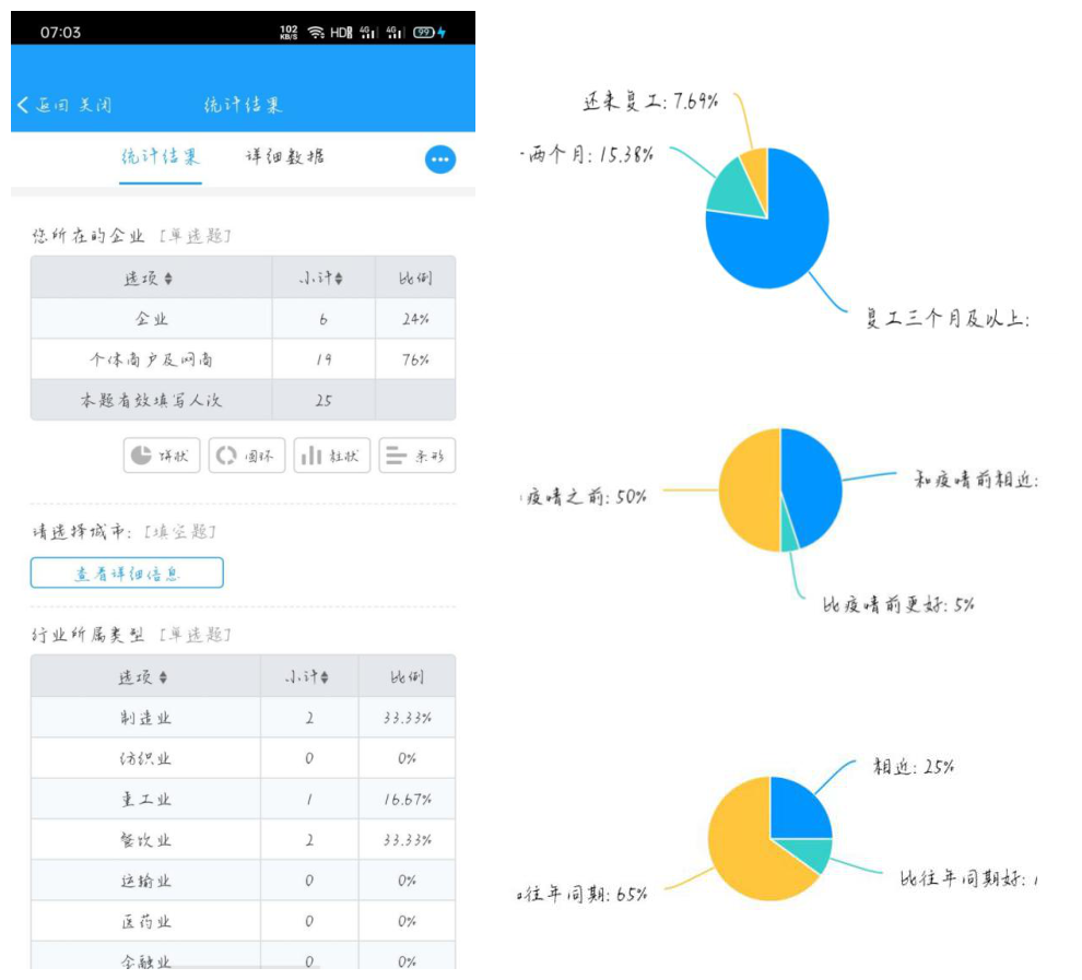 “清晨雨露队”有金属材料工程2019-2班王长龙等3名同学,他们调查的疫情后复工复产的主要对象是中小企业及个体商户他们通过“线上为主,线下为辅”的形式,实施实地调查,发放网络问卷,来了解疫情逐渐平稳后各行各业受到的影响,切实了解中小企业及个体商户面临的问题,尽可能的提出解决方案,为战胜疫情贡献一份力量。他们制作了关于个体商户和中小企业的调查问卷,大体分配发送给中小企业的工作人员,个体商户以及网商用户,从七月二十六号至今,问卷答题人数为25人。同时,组员也在线下走访调查,与商家进行交流,做出记录,收集更多数据。