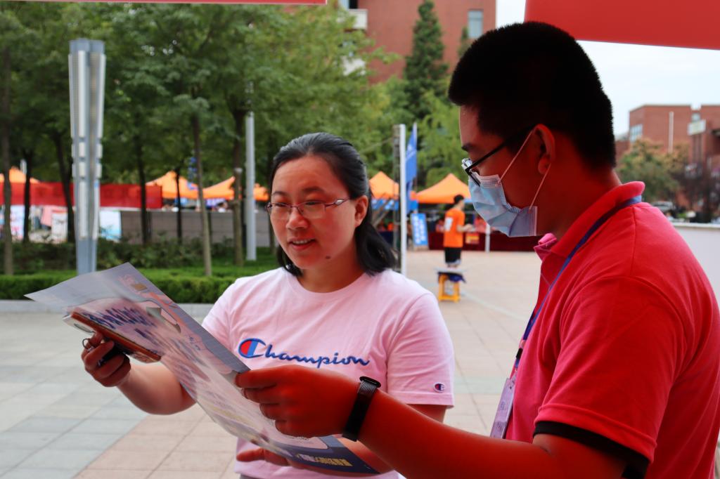团委老师为新生介绍校园环境