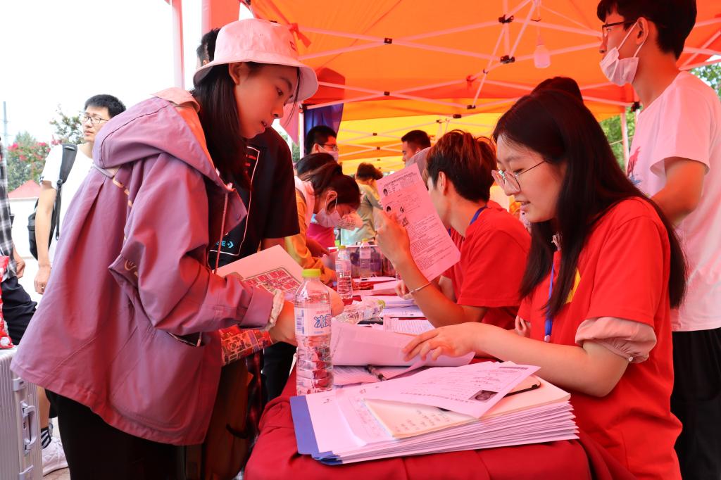 学院领导查看迎新现场