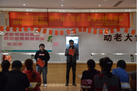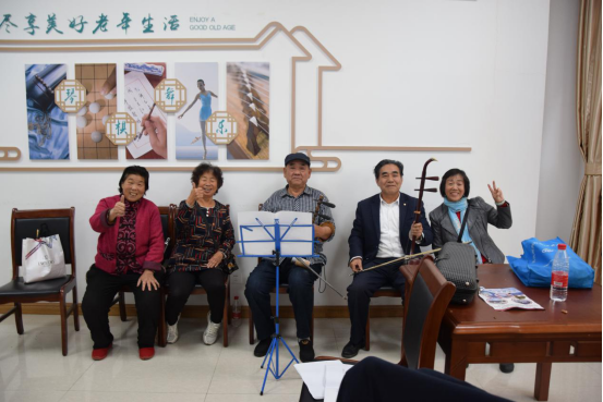 团队到达养老机构向老人表示关怀与慰问,通过帮老人打扫卫生、与老人下棋打牌、同老人面对面聊天、给老人讲述时政及教授保健知识等方式拉近志愿者与老人之间的关系。之后,志愿者为老人们送上精心准备的文艺节目,材料化学2019-1班皇甫亚楠演唱的《明天会更好》和新能源2020-2班的姚宇城朗诵的《当你老了》,体现了后辈对老人美好生活的祝愿及对老人已入暮年的宽慰,材料化学2019-1班庄英赞带来的京剧和高分子2020-1班李博演奏的二胡既弘扬了中华优秀传统艺术又加大了老年观众的参与度,还有激动人心的轮滑、声情并茂的合唱让爱心升温。最后进行合影留念,老人热情的双手和真挚的眼神久久不愿从志愿者身上移开。
