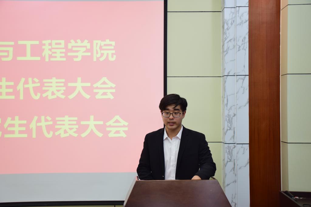 上午9:00,大会在庄严的国歌中拉开序幕。开幕式上,李建楠代表学院党委向大会的召开表示热烈的祝贺,对院学生会、研究生会的工作表示充分肯定。他对广大青年学生提出三点希望:一是希望广大青年学习新思想,践行新使命,练就新本领;二是希望各级学生组织激励新担当,接力新征程,实现新发展;三是希望广大代表发挥新作用,传递新活力,焕发新光彩。